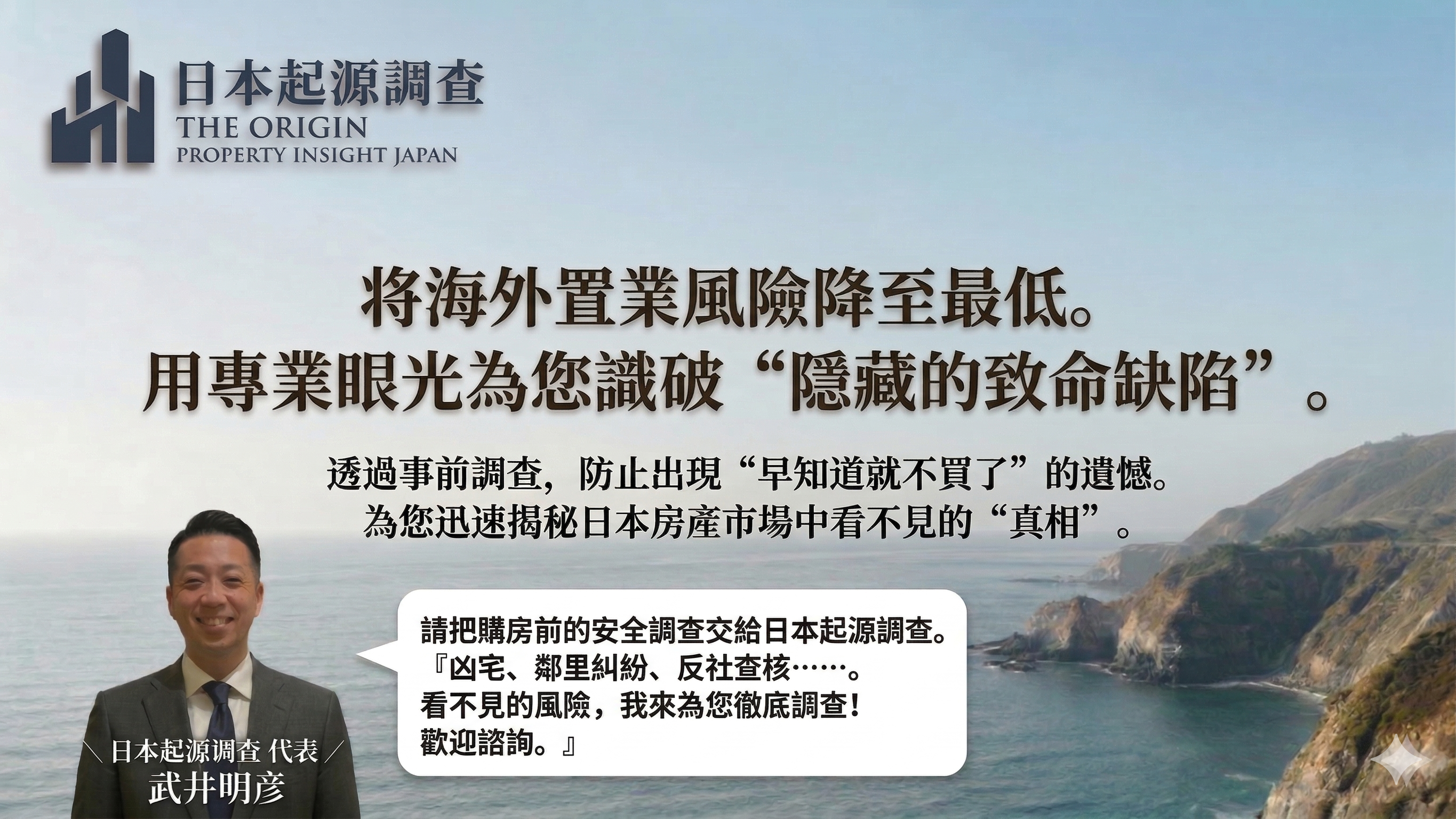 代表者 [武井明彥]電子郵件地址 [info@origin-insightjp.com]