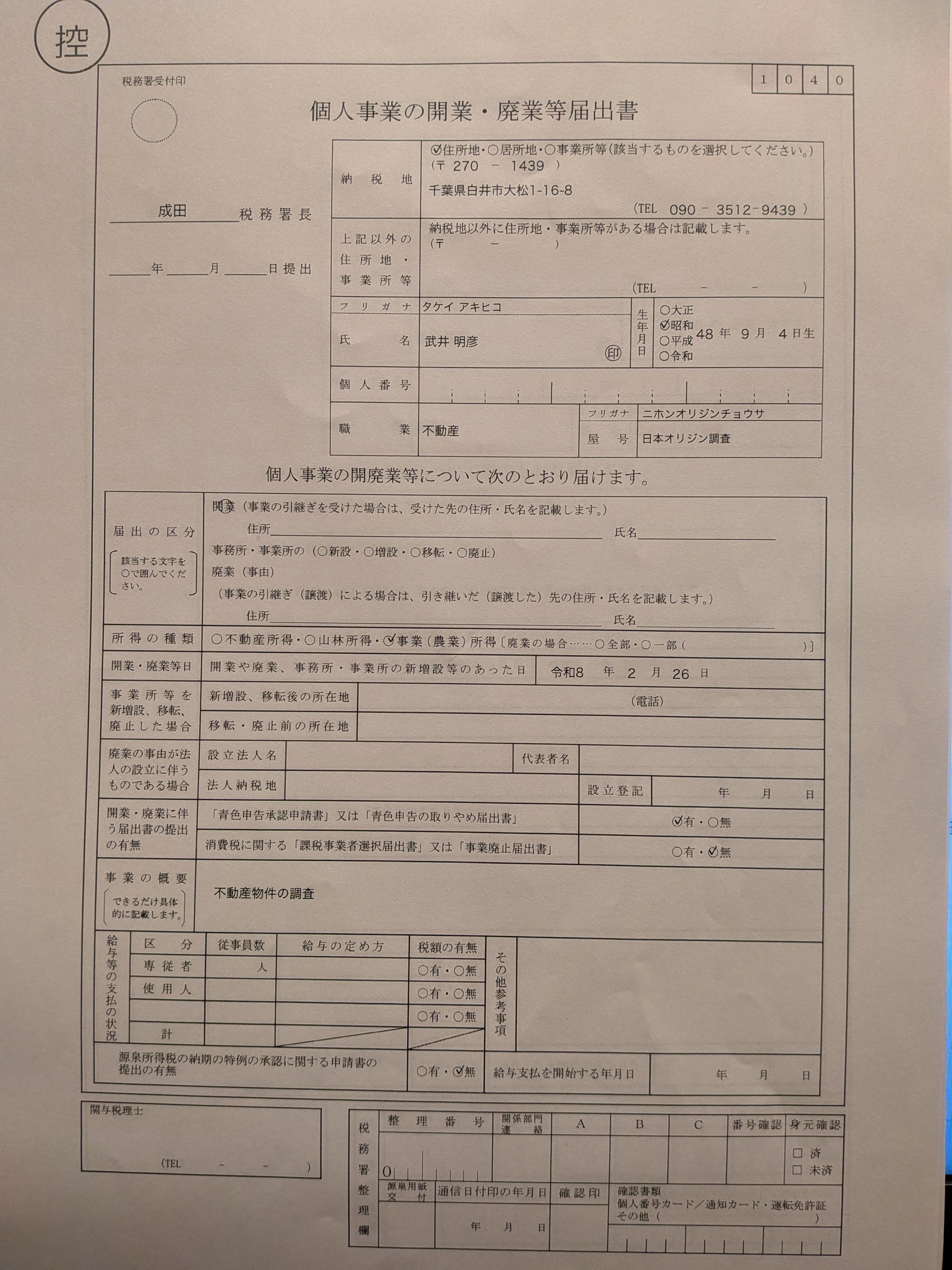 千葉受理中心 〒270-1439 千葉縣白井市大松116